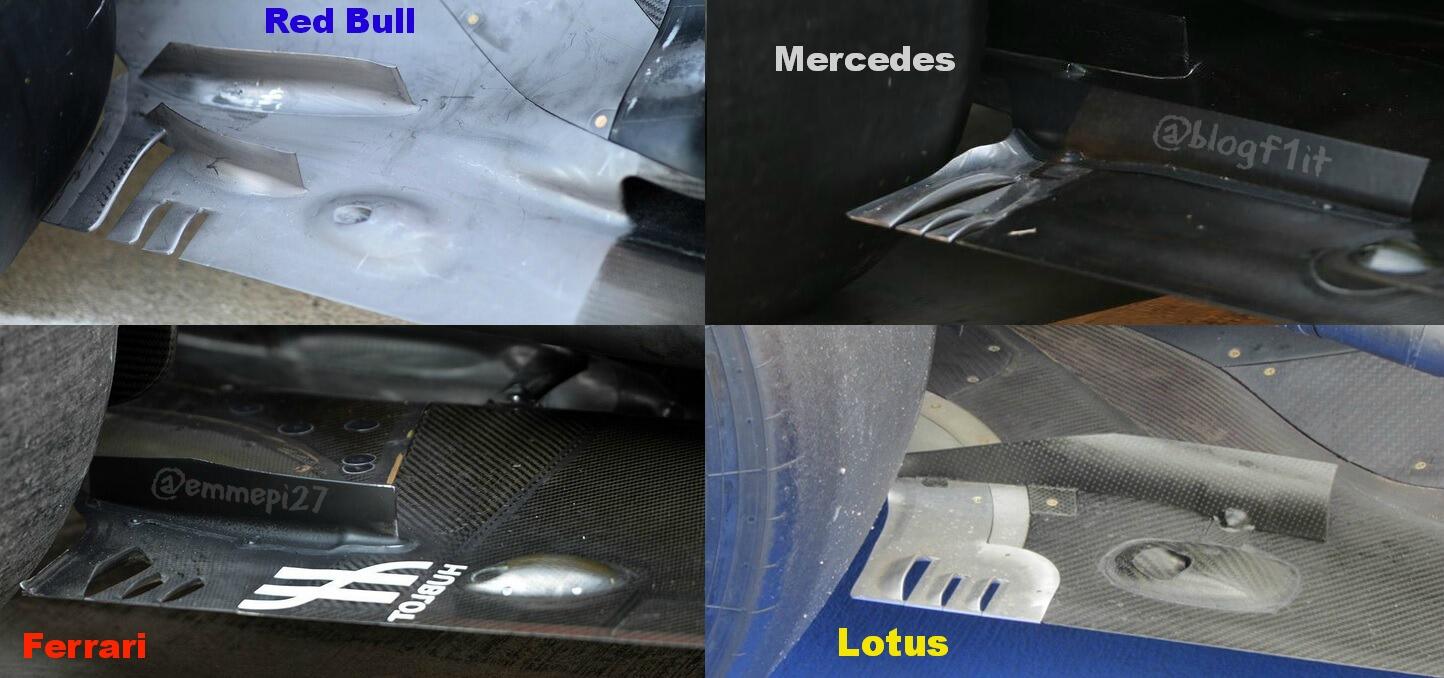 Très étonnante cette similitude entre Ferrari et Lotus alors que la fin des pontons de la E21 est beaucoup plus proche de la RB9.