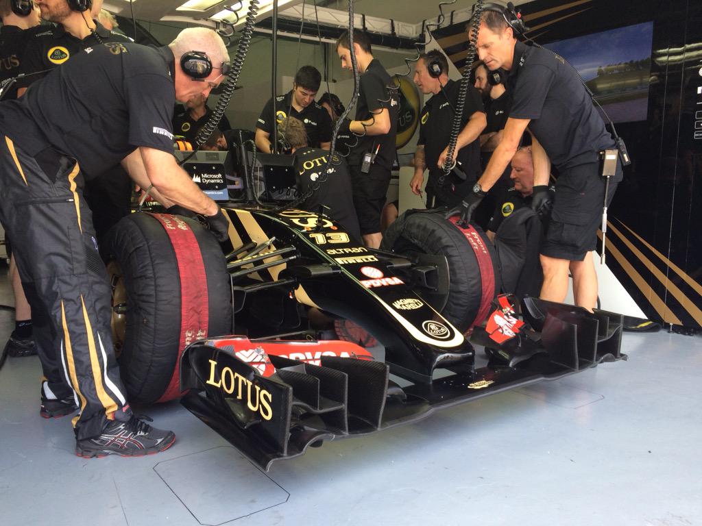 "Le Vénézuélien a testé de nombreuses pièces sur sa Lotus, et notamment toute une gamme d'ailerons avant durant la matinée, avant d'étrenner un nouveau fond-plat l'après-midi."
