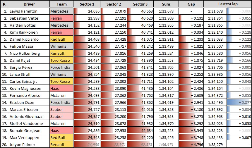 En tout cas une chose est sûre, l'écart est assez light avec str/fi et plus étonnant avec Williams, Hulk aurait peut être pu garder la 6eme place si à l'instar de Massa il avait tenté un ultime run... ils ont voulu économiser un train de pneu et aussi la mécanique !