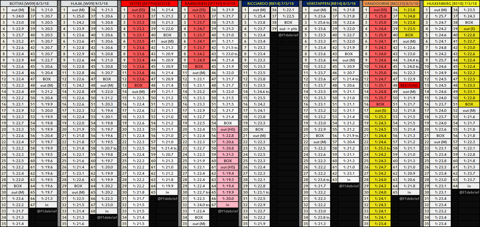 Y a vraiment un temps venu d'ailleurs dans ce condensé, c'est celui de Magnussen. Alors 2 possibilités. Soit la Haas est vraiment mieux que prévu, soit il n'y a rien à tirer de ce tableau!