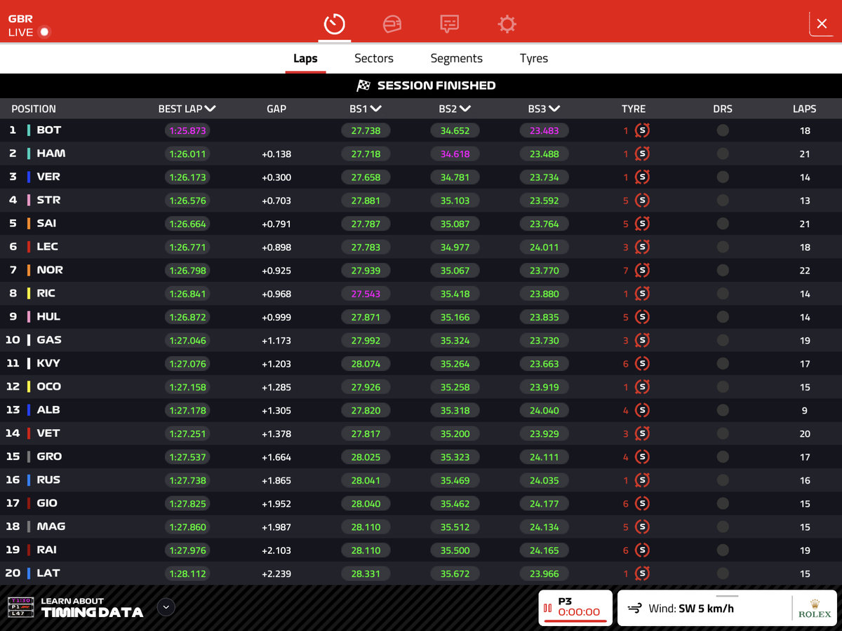 | 7 | L. Norris | Mclaren F1 Team | 1:26.798 | +0.925 | 23 |