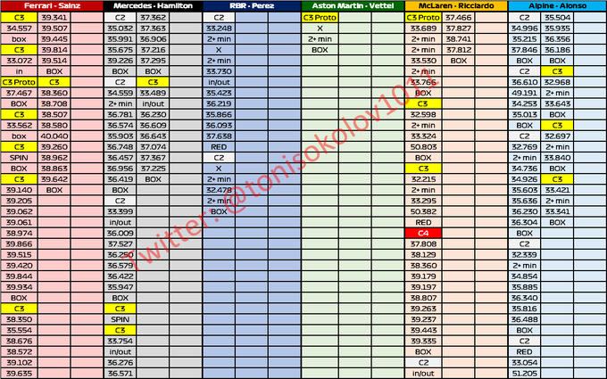 A noter que jusqu'à 16h, Nando était second de Ricciardo à 0.126sec. Apres, les autres ont sorti les tendres et ultratendres tandis que Alpine continuait à faire tourner du dur.